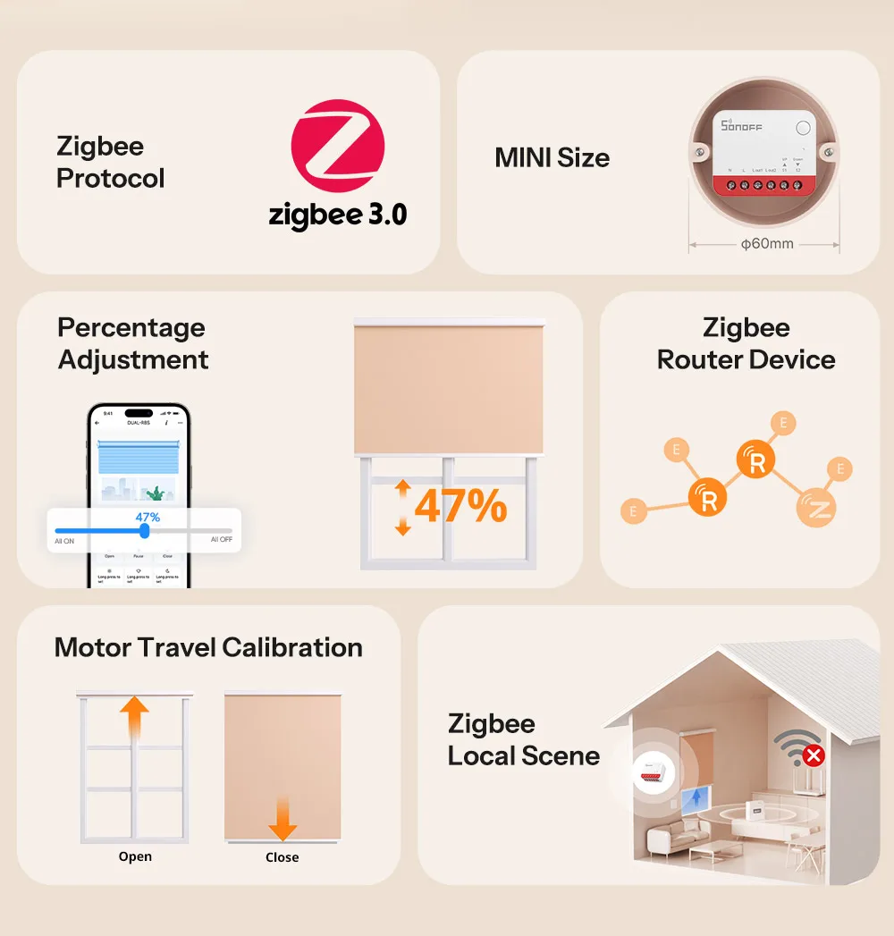 Più di un semplice controller per tende, MINI-ZBRBS funge anche da router Zigbee, aiutando a trasmettere ed estendere i segnali Zigbee nella tua casa intelligente.
