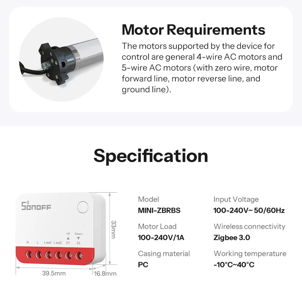 SONOFF MINI-ZBRBS Interruttore per tapparelle intelligente Zigbee Amplificatore di segnale per scene locali Zigbee Trasforma le tende eWeLink tramite hub ZigBee