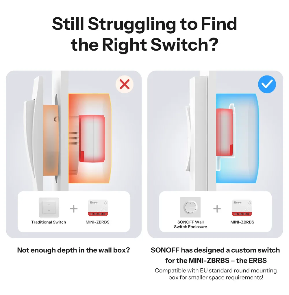 MINI-ZBRBS vanta un design ultrasottile e compatto che gli consente di adattarsi a quasi tutte le scatole di montaggio standard o a parete, ma è sufficientemente potente da aggiornare il tuo sistema di tende con un controllo intelligente senza aggiungere ingombro.